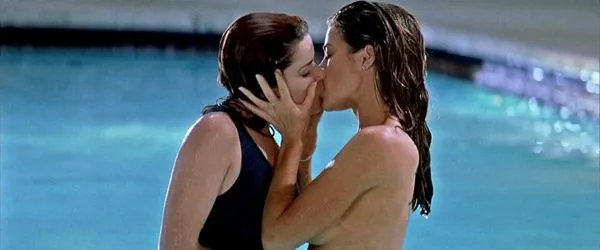 O ja, tu je mačji boj! Denise Richards v toplesu ko poljubi Neve Campbell v bazenskem prizoru iz filma Whild Things! ( POMAKNITE NAVZDOL za video)